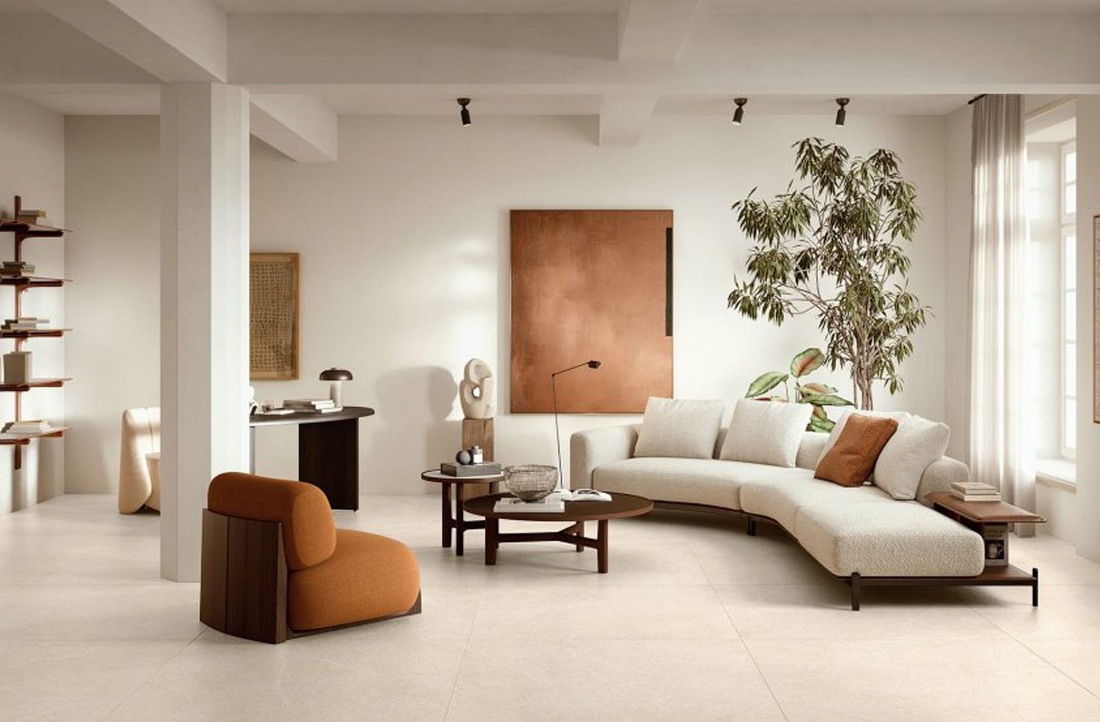 Elegant, sophisticated Sensoria tile collection is inspired by “Bianco Siberia” stone and achieves a light, understated visual effect. This floor and wall tile collection is characterised by tone-on-tone graphic design, with white and grey veins that bestow depth and refinement.
