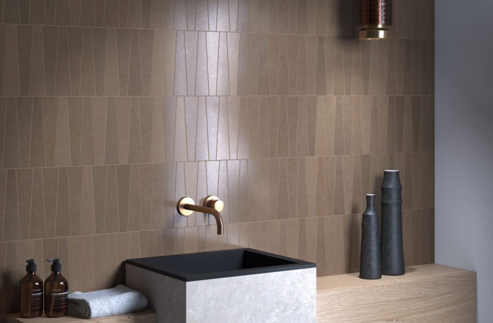 The Bamboo tile collection is defined by its distinctive trapezoidal shape, bringing elegance and geometric harmony to any space. Its symmetrical design allows for perfectly adjustable compositions that create rhythm and visual balance.